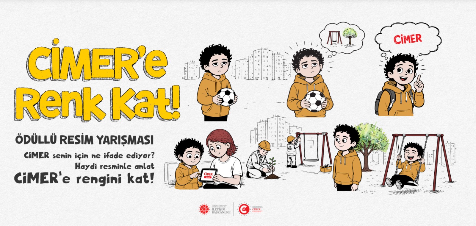 “CİMER’e Renk Kat” temasıyla düzenlenen ödüllü resim yarışması, ilkokul ve ortaokul öğrencilerine açık olacak. Yarışmada çocuklardan, hayallerindeki CİMER’i resmetmeleri isteniyor. Değerlendirme sonucunda dereceye giren öğrencilere sürpriz ödüller takdim edilecek.